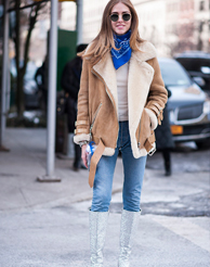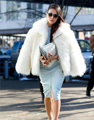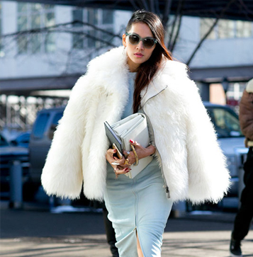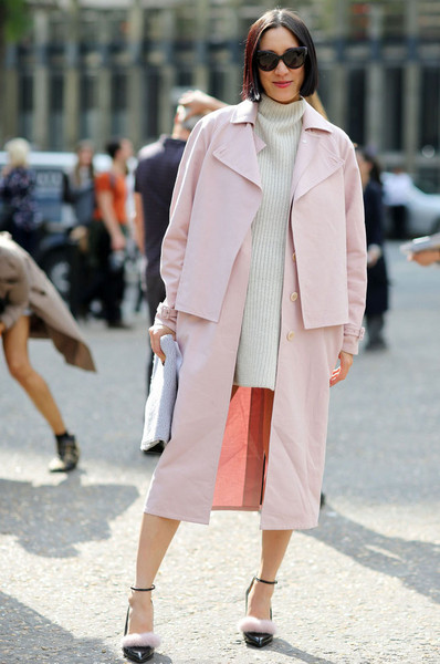 Instagram時尚伙伴關(guān)系負責人Eva Chen用簡約的粉色大衣搭配白色長款高領(lǐng)針織裙,輕松制造出層次感,絨毛裝飾的尖頭高跟鞋更具玩味。